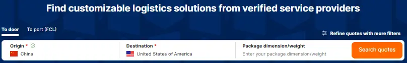 Alibaba also provides a list of freight forwarders. Just input your shipping details, and you’ll get plenty of options, similar to searching for suppliers. If you’re interested in comparing prices, you can request quotes from them.